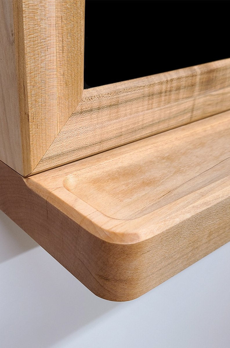 It is made from solid wood – maple, oak, or walnut stock finishes, either stained or painted black or white.