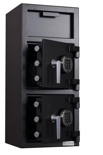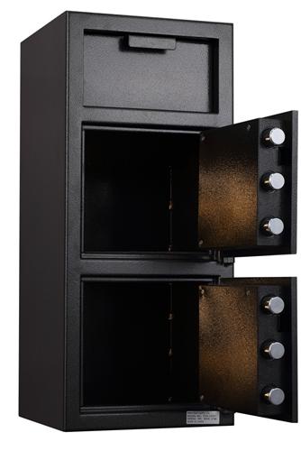 Dual door drop safe - 3 active chrome locking bolts 1-1/4" diameter (each compartment)