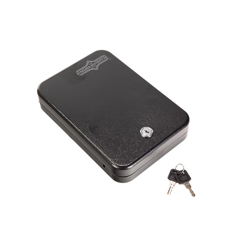 If you're looking for a small safe to store your pistol and other valuables, the Surelock SLS-MLBK Nighthawk Series Mobile Pistol Safe with Key Lock will work great. It is small enough to be portable at 2" high by 6.50" wide by 9.75" deep and weighs 3 pounds. You can carry this safe with your pistol secured to the range or wherever you may roam. You can even store other items inside such as small documents, wallets, and jewelry.